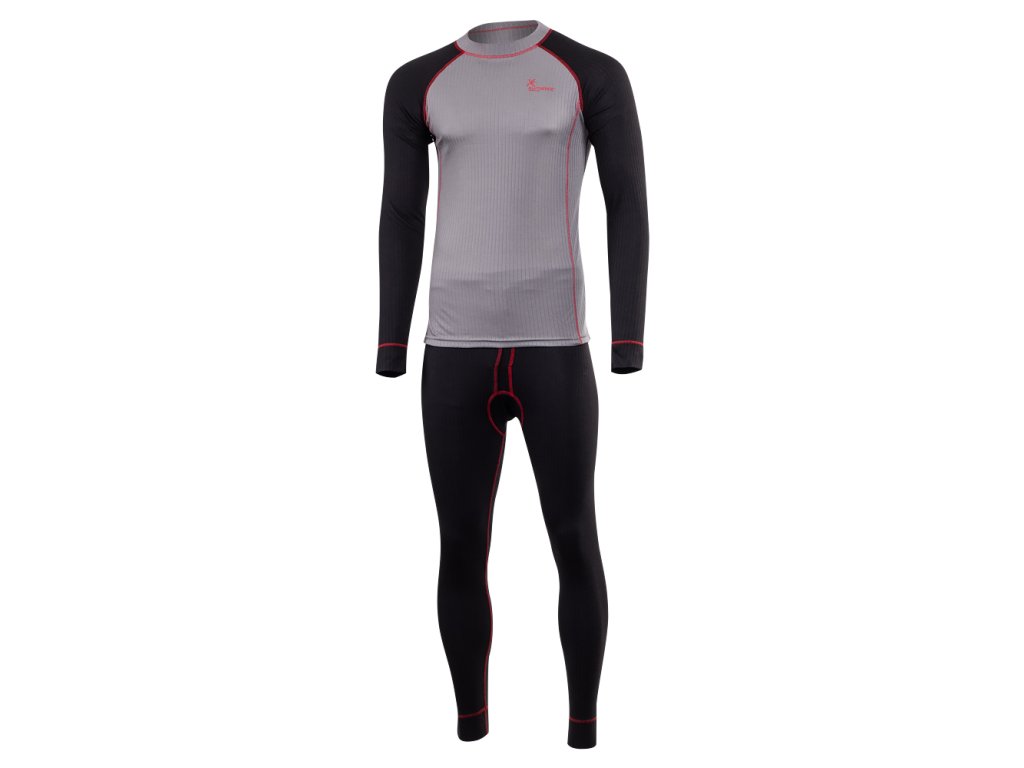 Set pánského funkčního prádla určeného pro zimní sporty. Triko s dlouhým rukávem a spodky jsou šité plochými švy, které eliminují podráždění kůže při nošení. Set má manžetu na rukávech, u krku a na nohavicích. Triko má prodloužený zadní díl. Materiál neobsahuje elastan, pružnosti je docíleno žebrovou strukturou. Příjemný omak podobný přírodním materiálům, nedráždí mechanicky kůži. Vnitřní strana materiálu je mírně počesaná, zabezpečuje tak lepší tepelnou izolaci. Materiál je prodyšný, rychleschnoucí, skvěle odvádí pot.